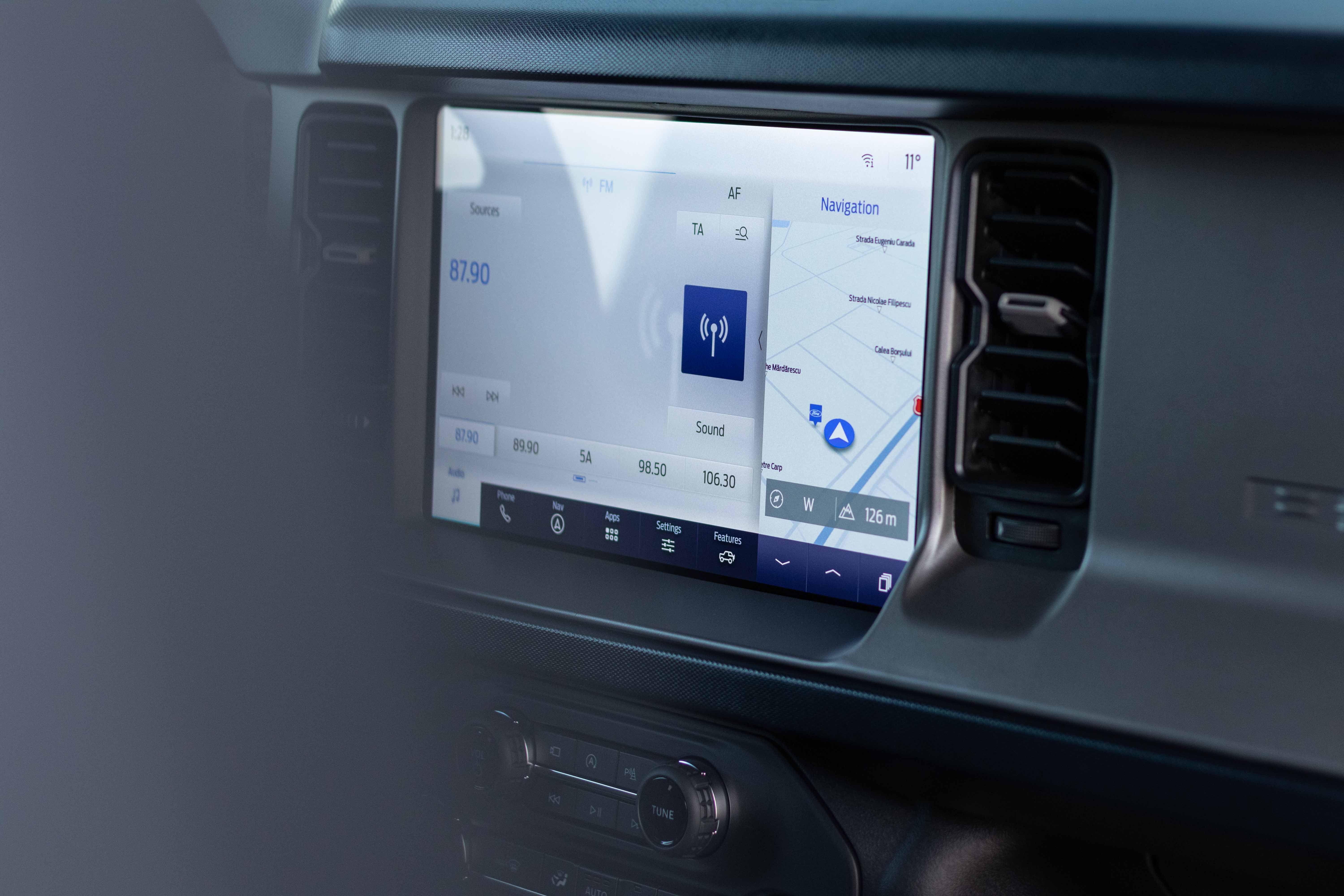 • Sistem de navigație cu capacitate zoom-in, trafic în timp real, destinații predictive și ghidare pe traseu