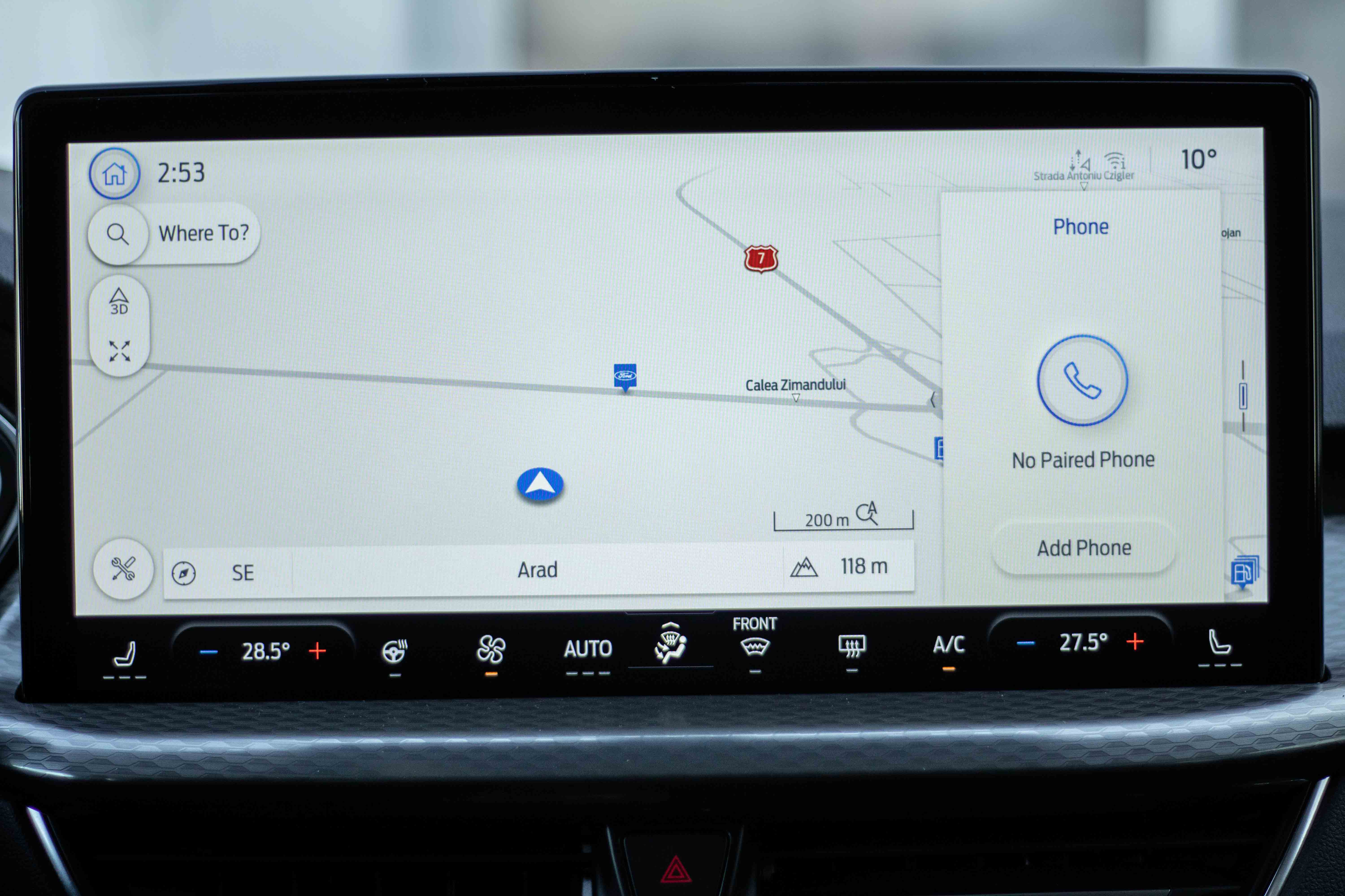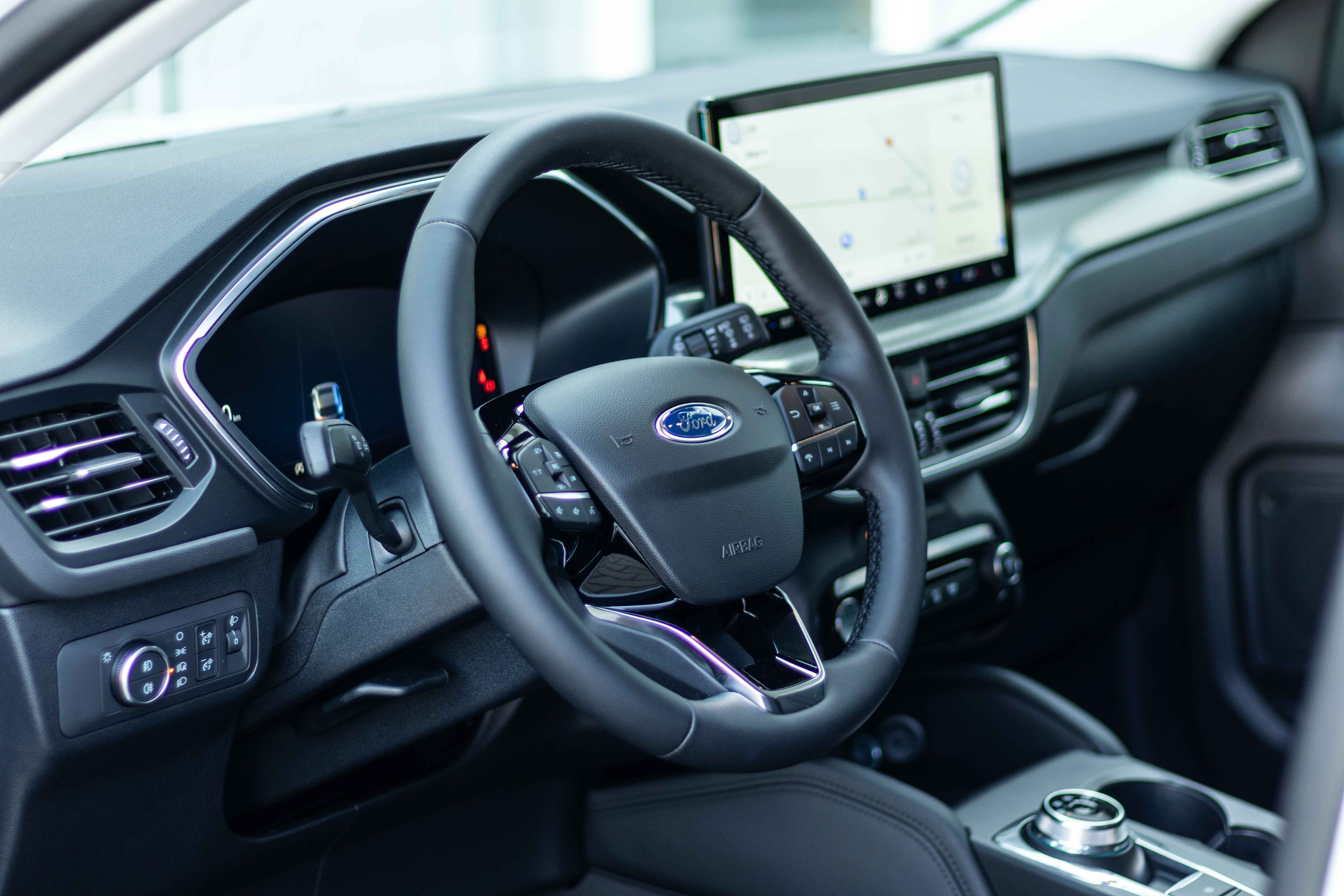 • Sistem multimedia - Pack 1 (ecran de bord - digital 13”, ecran tactil central multifuncțional 13.2", sistem de navigație - include sistem gasire statii de incarcare, radio DAB, 6 difuzoare, modem integrat 5G, sistem SYNC 4, comenzi radio pe volan)