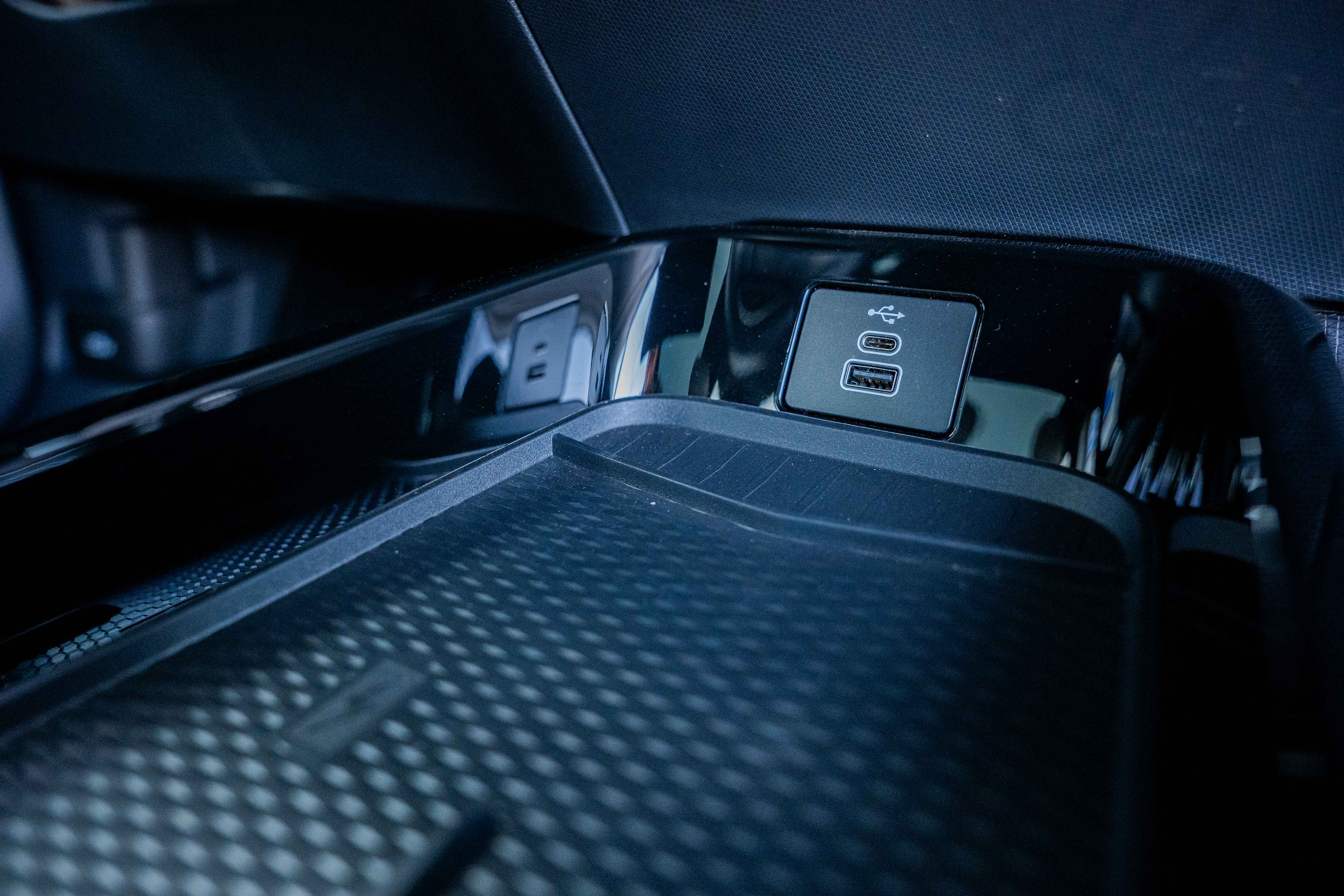 • Consola centrală podea față - cotieră cu spațiu depozitare; frână de parcare electrică EPB; suport pahare (2); 2 x USB w/ Media (1 type A + 1 type C) fata; 2 x USB Smart Charge (1 type A + 1 type C) spate, ventilatie spate